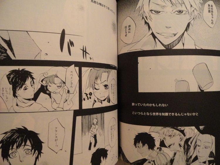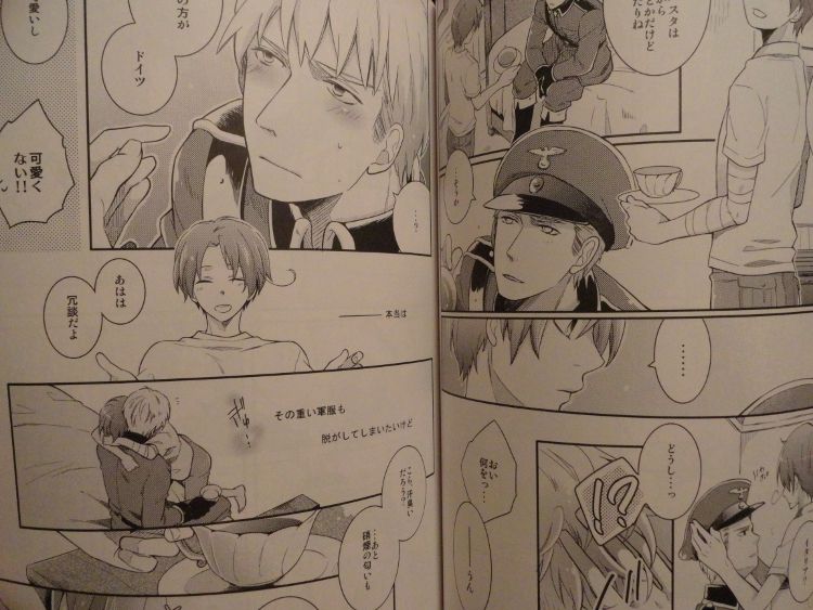 Hello, community! I'm selling six Hetalia doujinshi (1 USxUK, 1 Bad Friends Trio, 1 ItalyxGermany and 3 GermanyxItaly); if anyone is interested, please comment! :D